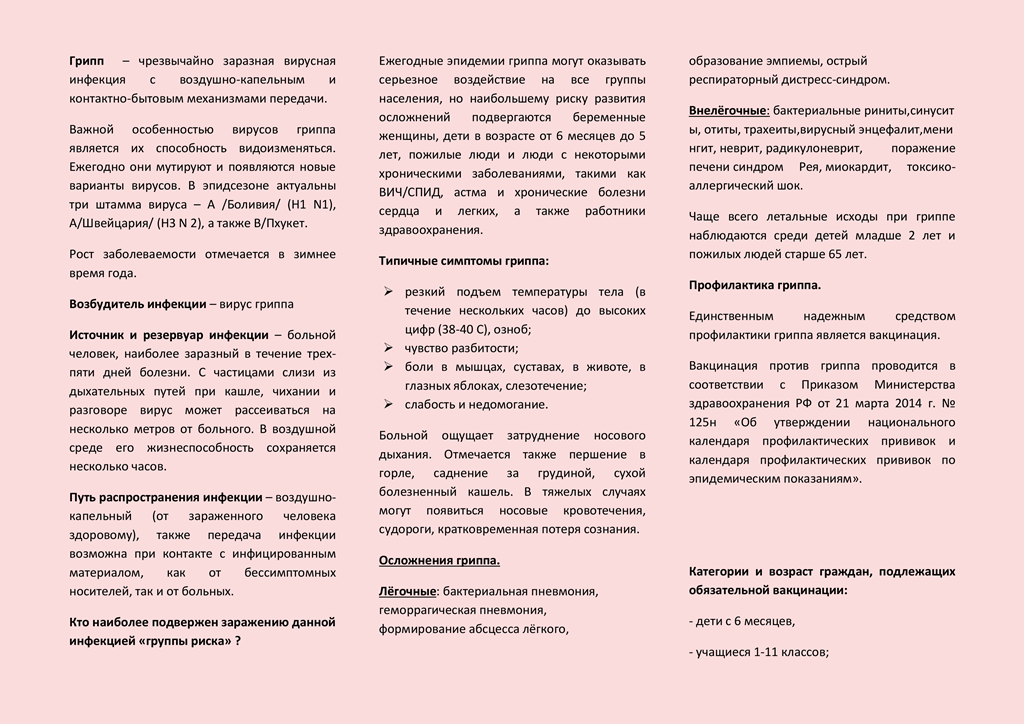 Вакцинация против гриппа во время беременности (буклет)